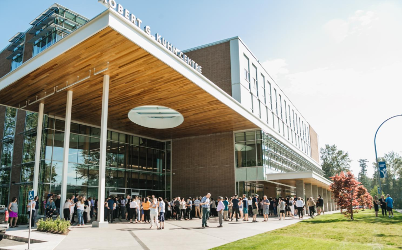 The Robert G. Kuhn Centre is a mass timber 4-storey, 73,000 sq ft academic building that serves as a university facility for business education, classrooms, and student spaces.